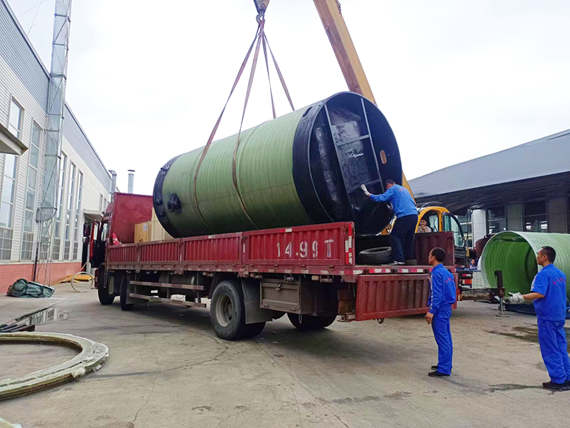 我司玻璃钢一体化雨污水提升泵站装车发货市政工程生物城环境改造项目